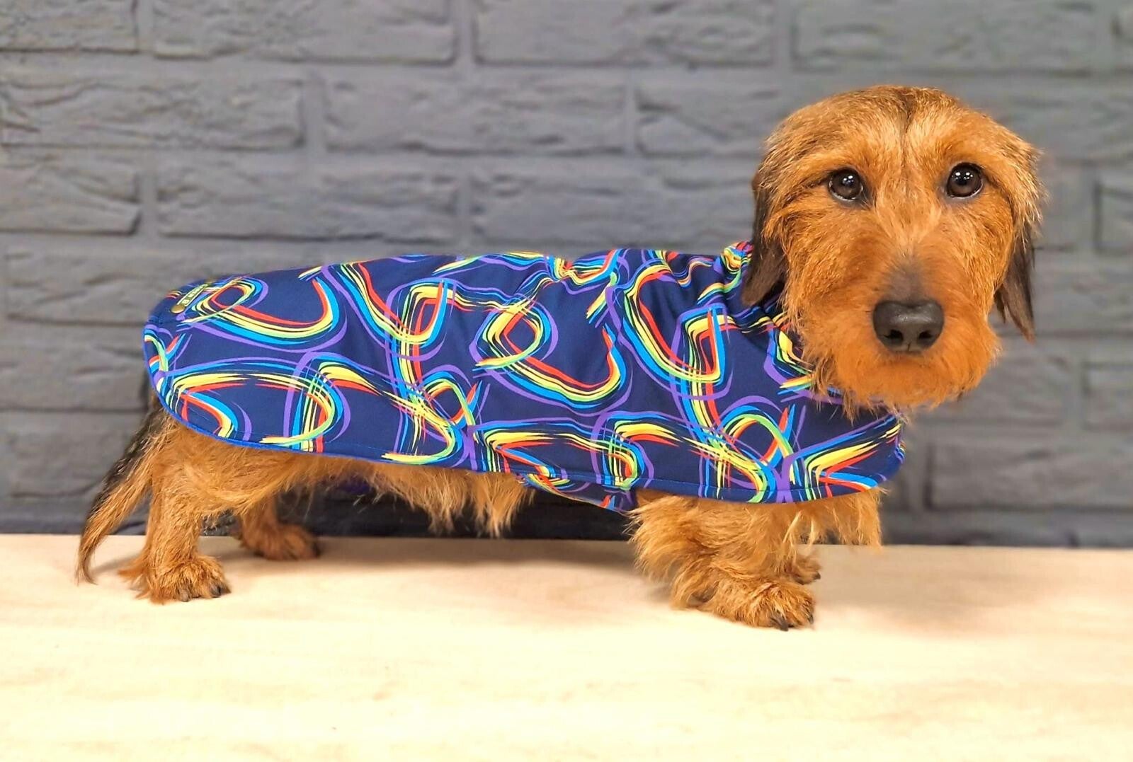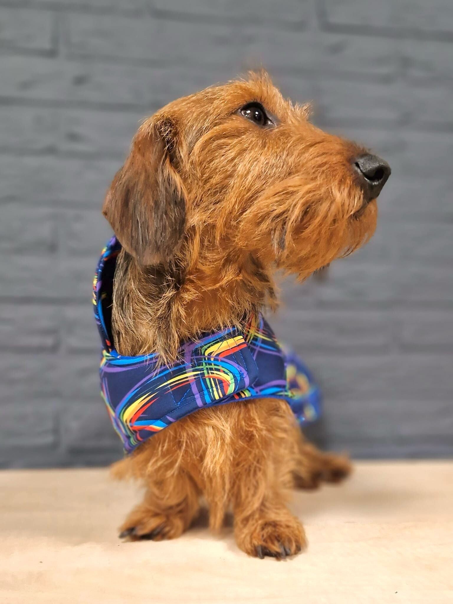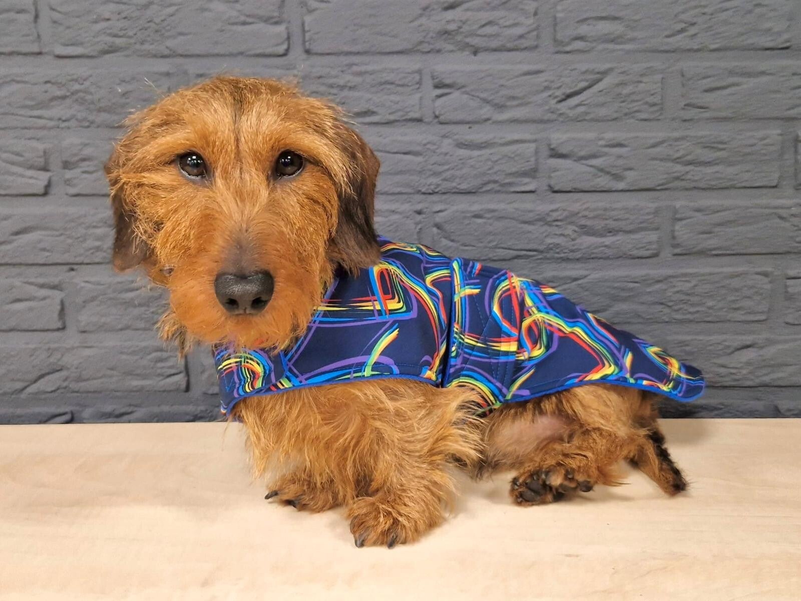Je zult verliefd worden op deze stijlvolle en comfortabele hondenjas. Het ontwerp zit vol met kleurrijke leuke regenboogharten die het jasje uniek maken.