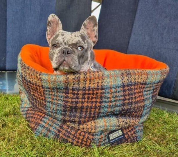 Je kunt de bovenrand van de snuggle bucket omslaan, of natuurlijk gewoon zo laten, net wat je hondje prettig vind.