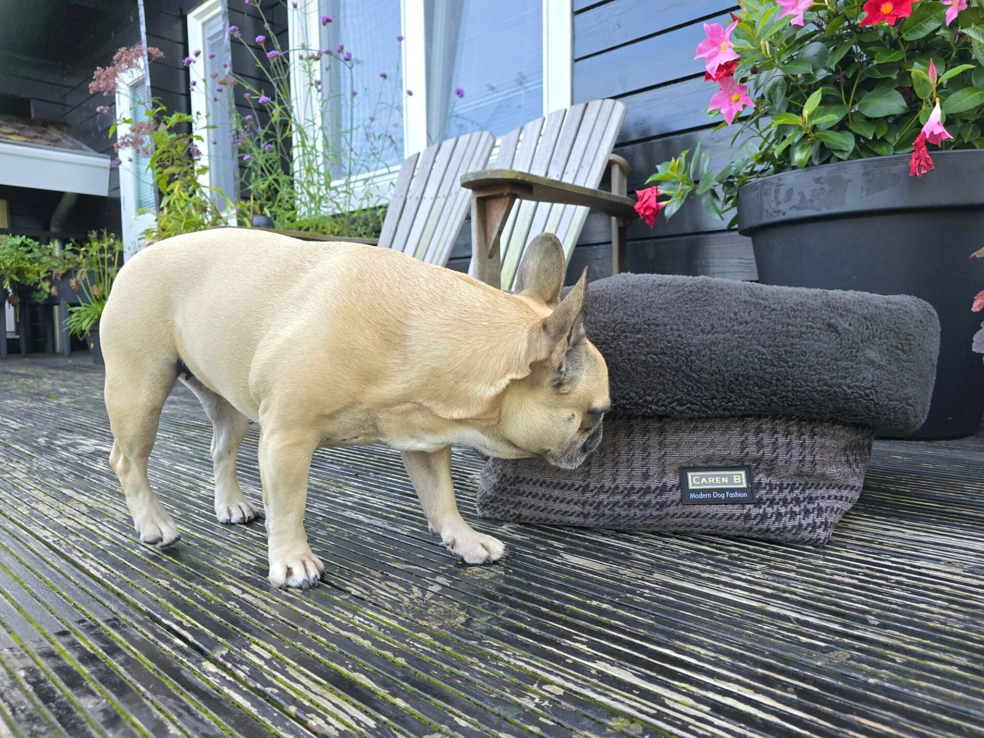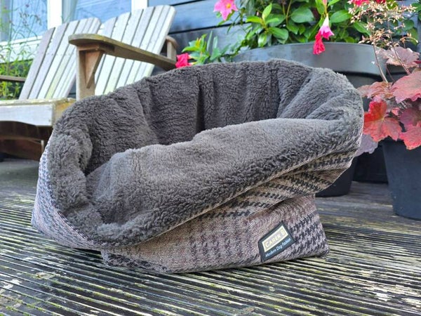 Je kunt de bovenrand van de snuggle bucket omslaan, of natuurlijk gewoon zo laten, net wat je hondje prettig vind.