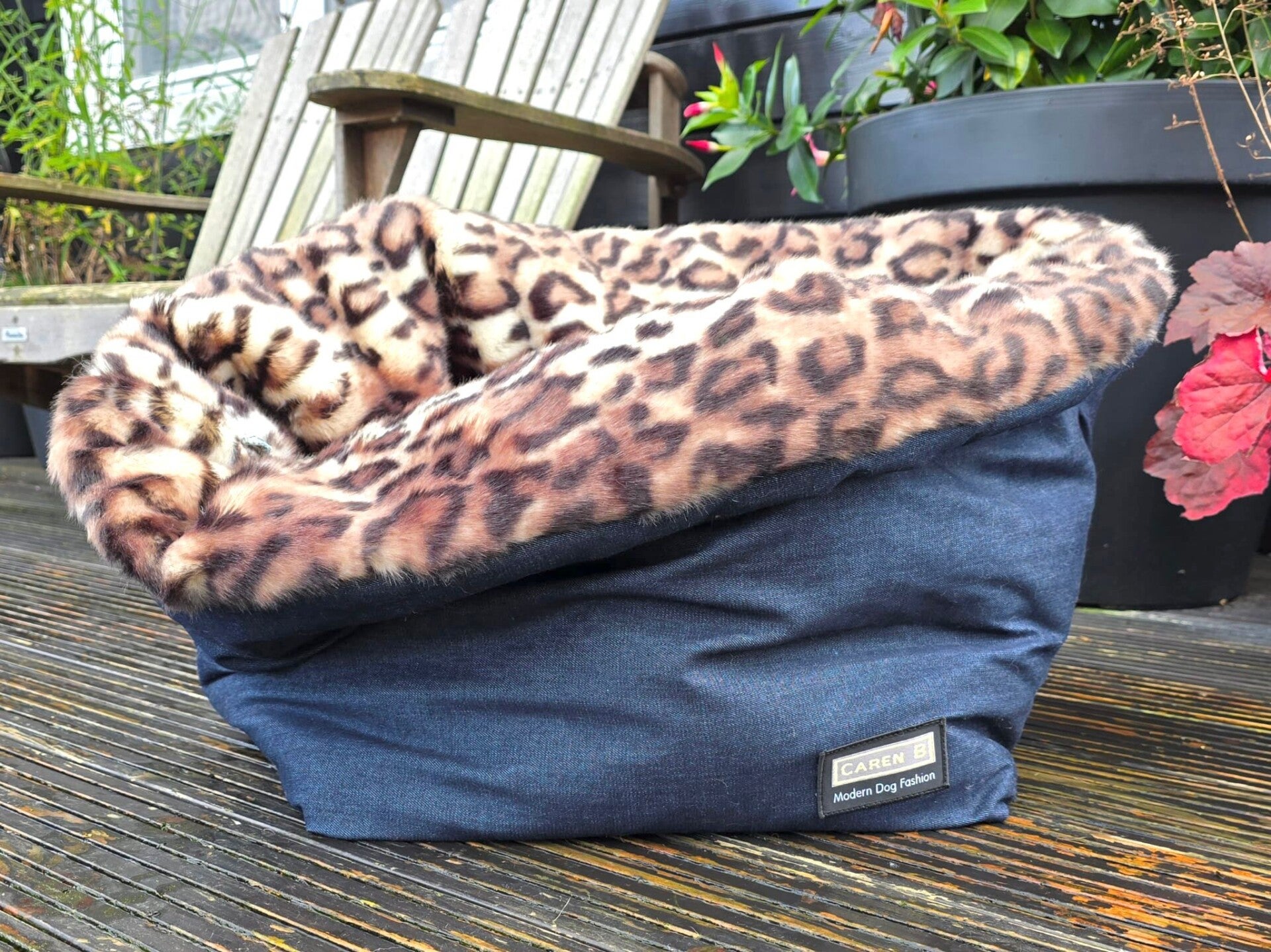 Een sieraad voor elke woonkamer, en je hondje zal er heel fijn in slapen, in deze Caren B Snuggle Bucket Jeans and Leopard. Aan de buitenzijde stoere jeans stof, binnenin zit een prachtige leopard motief namaak bont van zware kwaliteit.