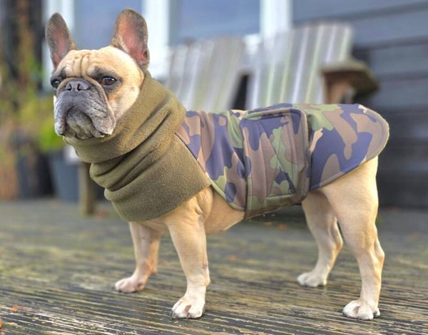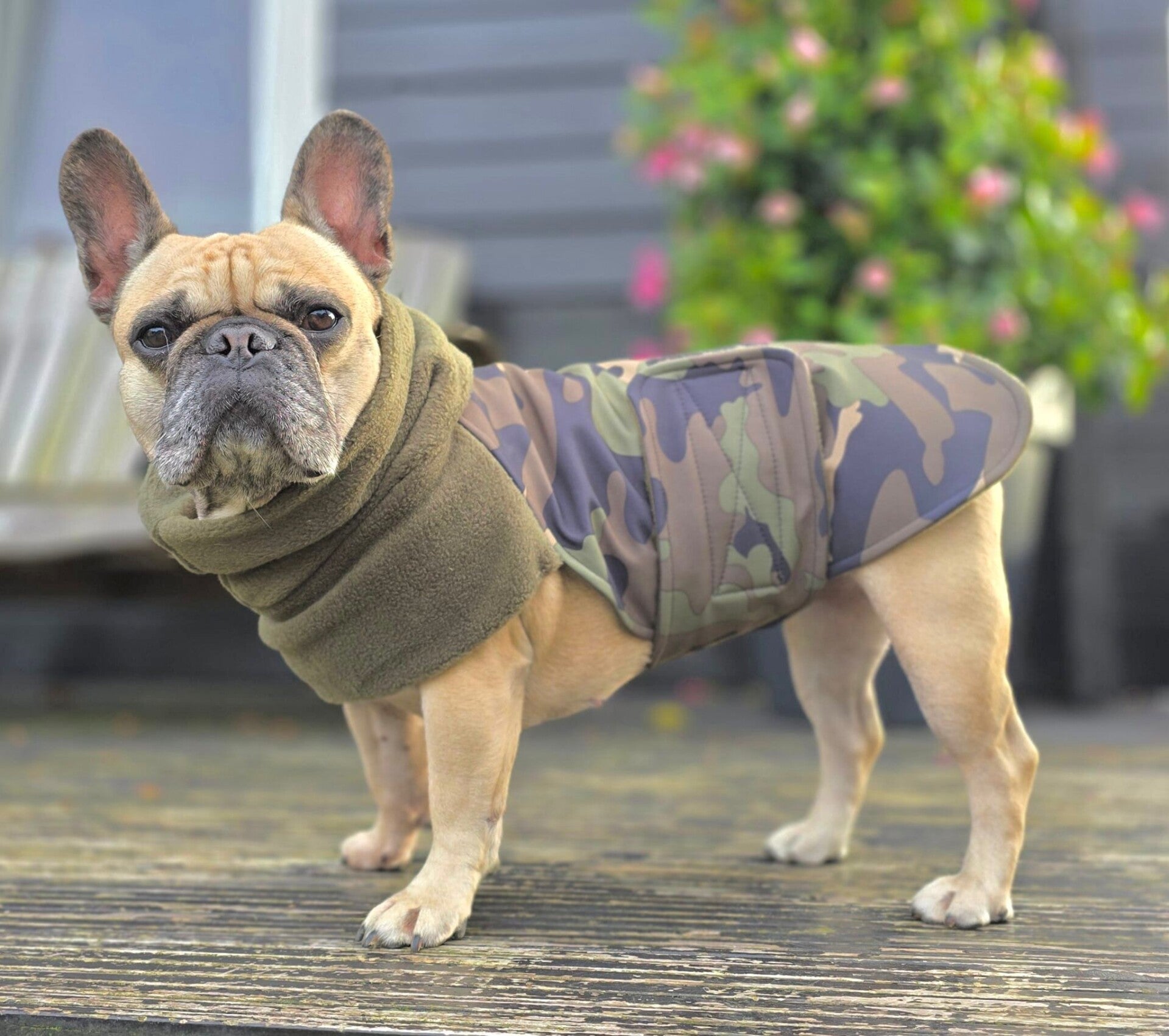 Geef je hond de warmte en stijl die hij verdient—bestel vandaag nog de Caren B Hondenjas Green Army!
