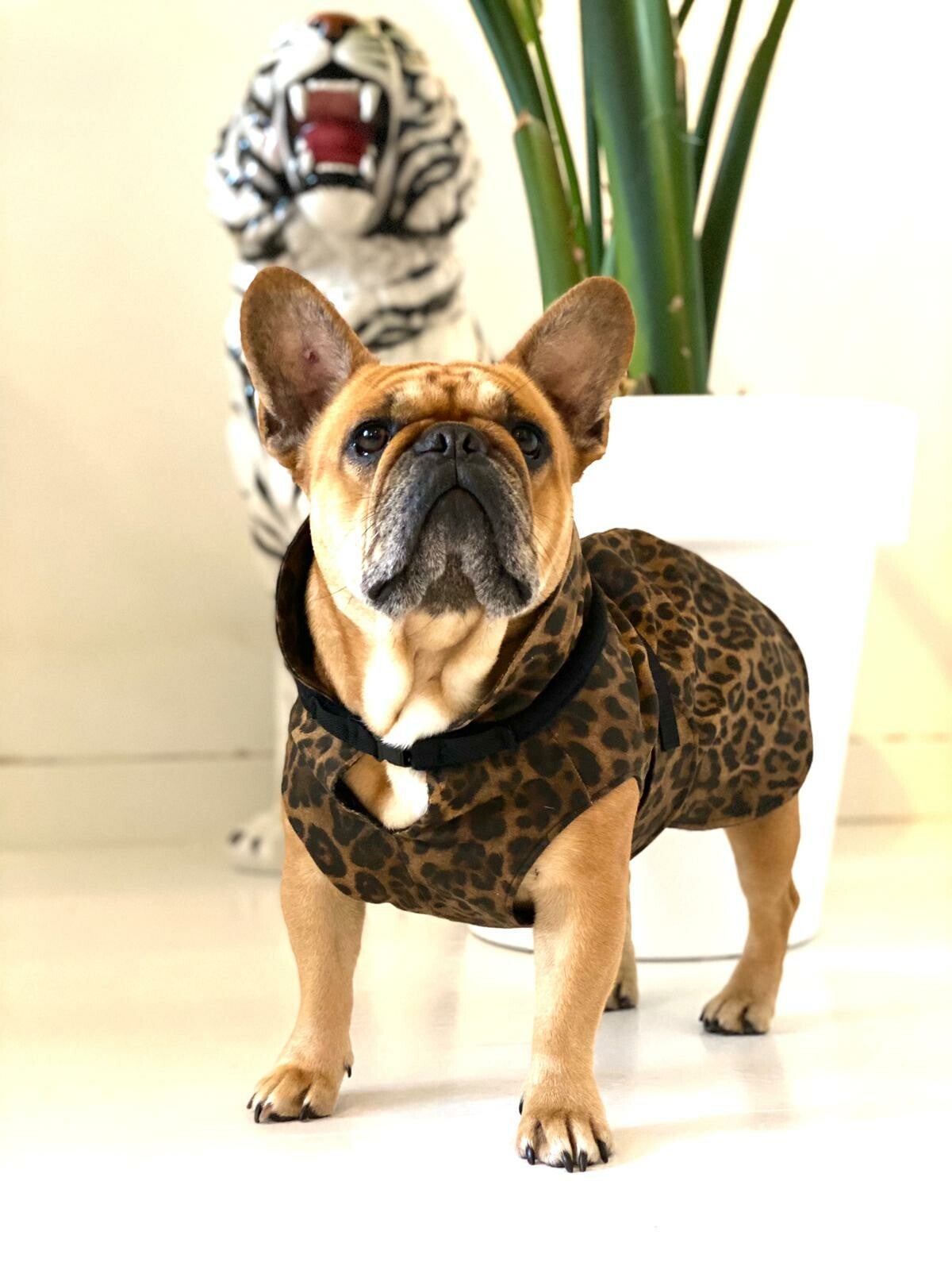 Op de foto's draagt Claire Caren B hondenjas classy leopard maat XL.