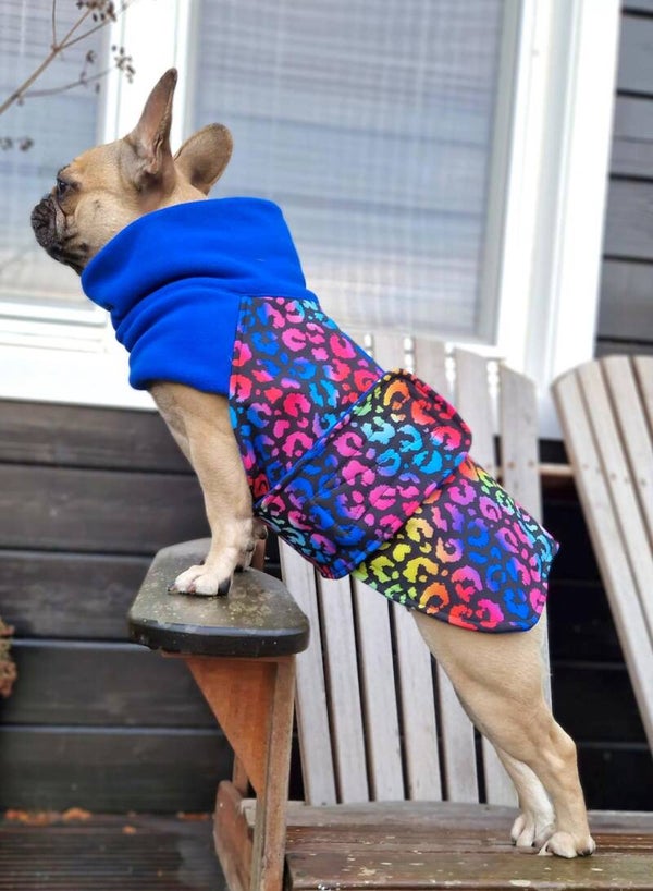 Deze Caren B hondenjas Rainbow Leopard is het perfecte mode-item voor je lieveling. De stoere luipaardprint gecombineerd met regenboogkleuren ziet er super vrolijk uit.