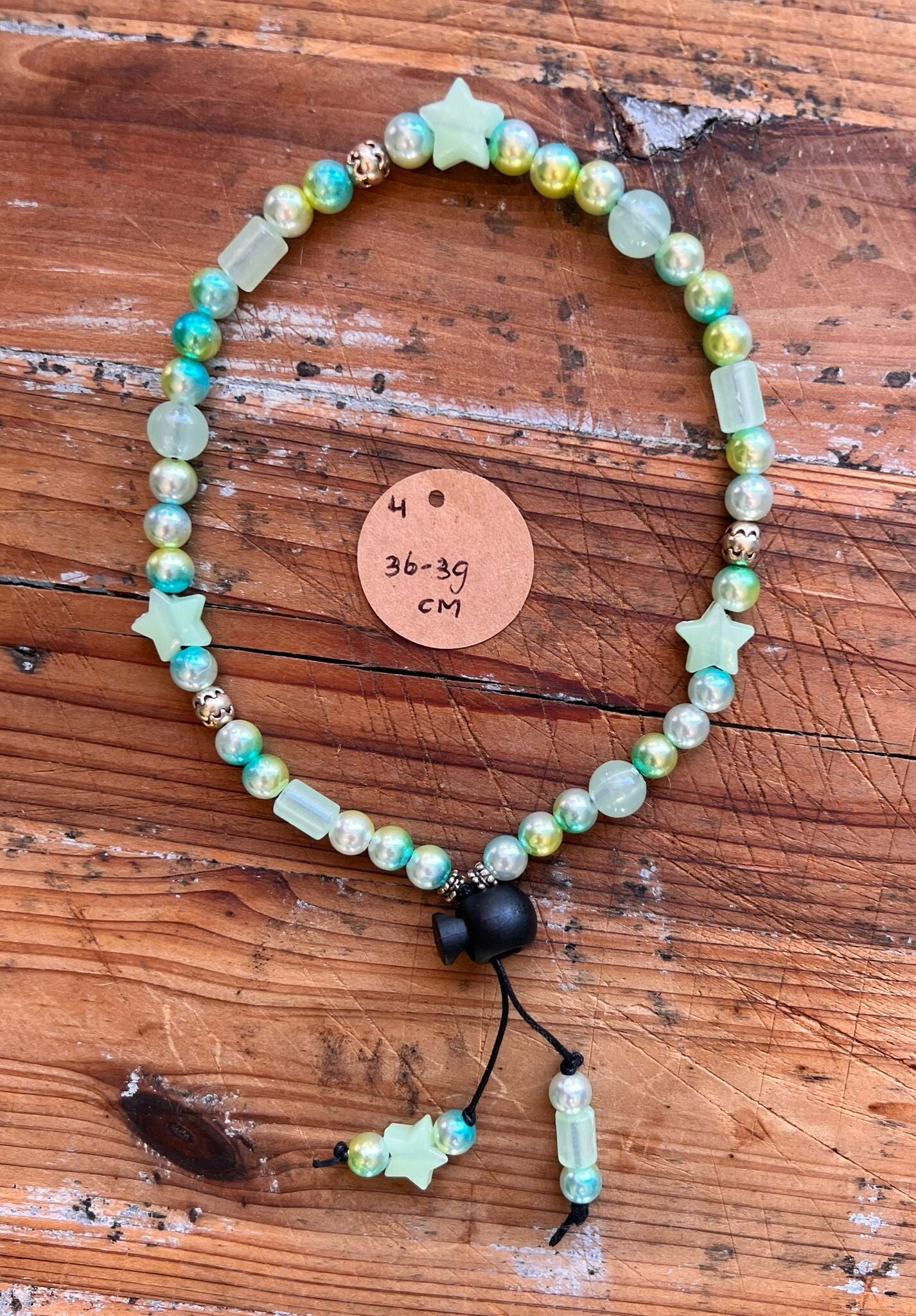 - wild spelen of laten vallen van de Caren B Glow-in-the-dark ketting kan ervoor zorgen dat de kralen kapot gaan