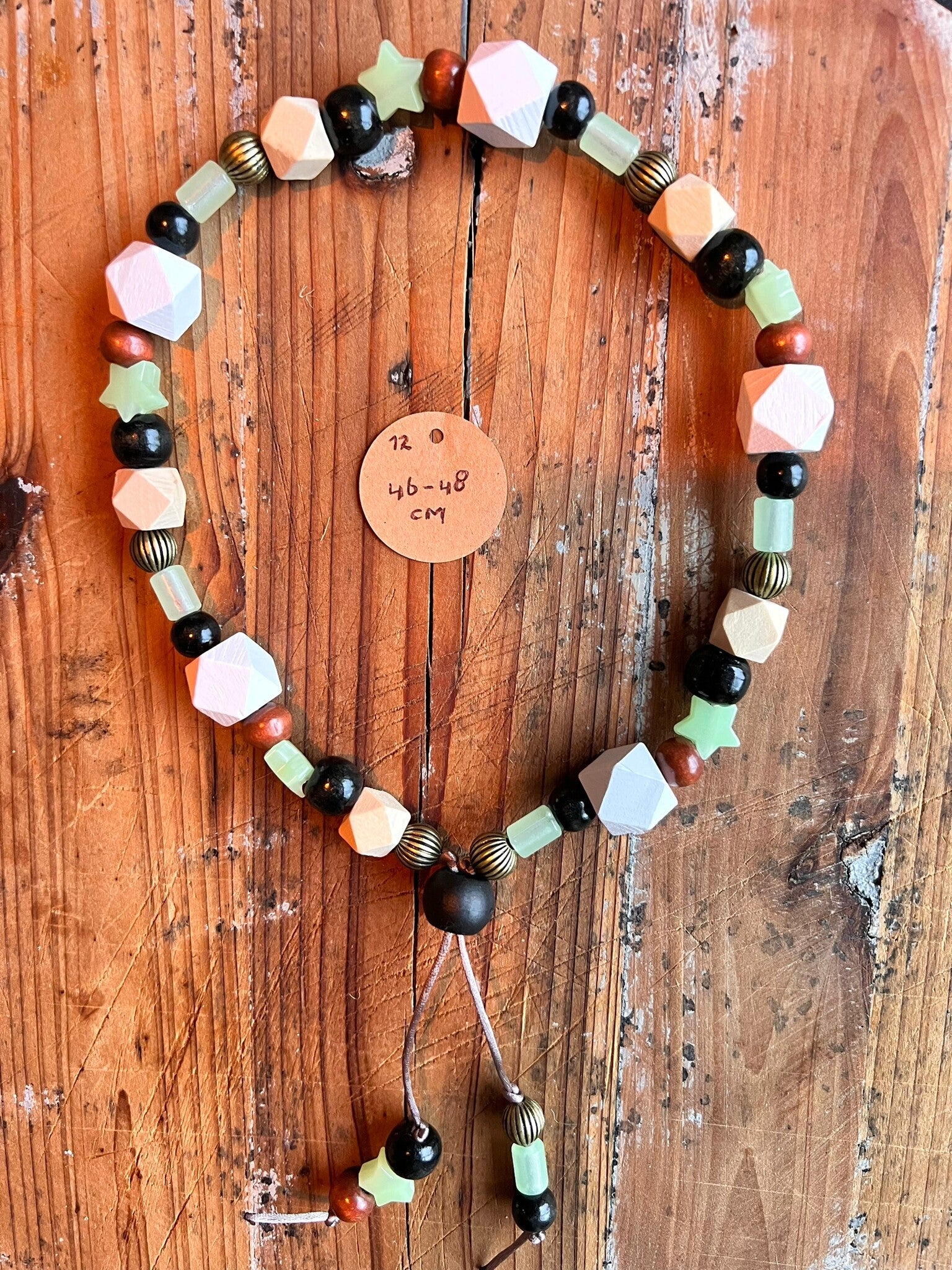 bijvoorbeeld: nekomvang 40 cm + 2 cm = 42 cm - kies een Caren B Glow-in-the-dark ketting waarbij de uitkomst van je meting, inclusief de extra 2 cm, valt binnen de minimale en maximale neklengte van de ketting